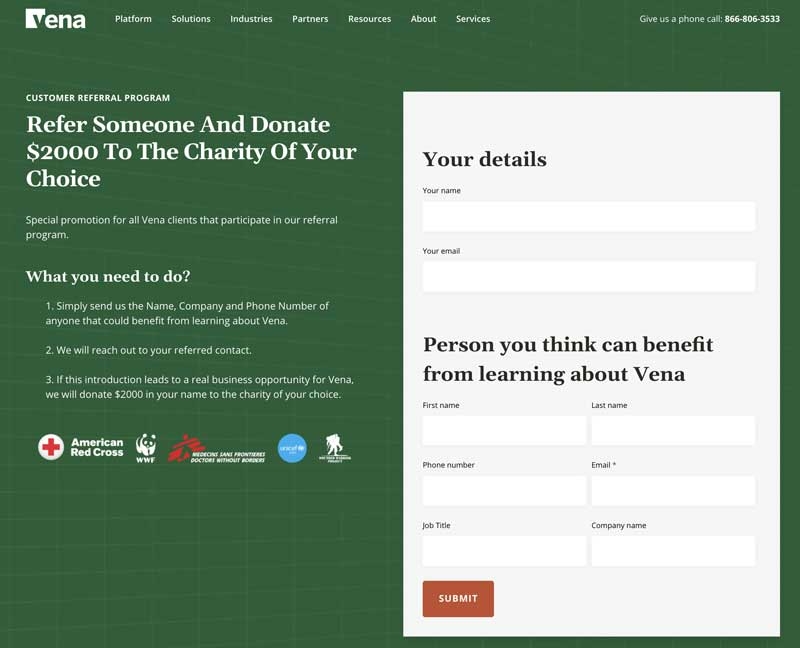 Make a donation to a charity of the advocate’s choice in exchange for a successful referral. This type of template works well when you can’t offer a reward directly for the referral, such as in a healthcare-related industry. But it’s great for any community-minded brand.