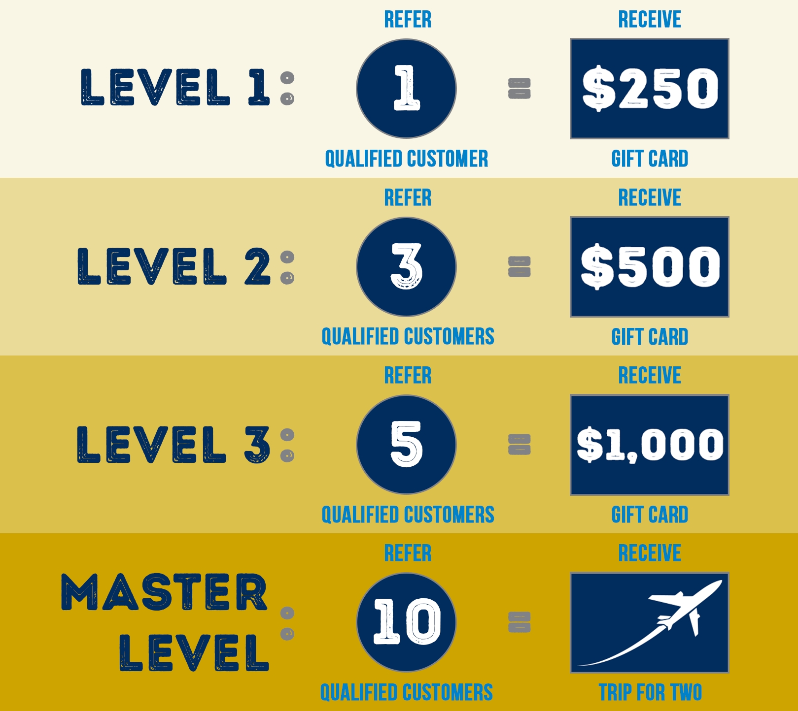 Advocates receive rewards for every referral, but they also receive an entry into a drawing for a big-ticket reward. The winner is picked at random, but the more referrals someone makes, the higher their chances of winning.
