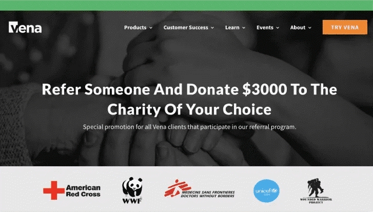 For example, budgeting software company Vena donates to charities of a client’s choice whenever their clients successfully invite friends.