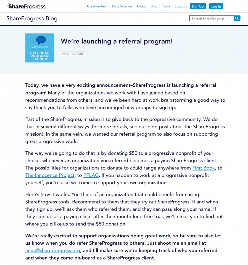 Write a post about the program on your blog, like the example below from ShareProgress:
