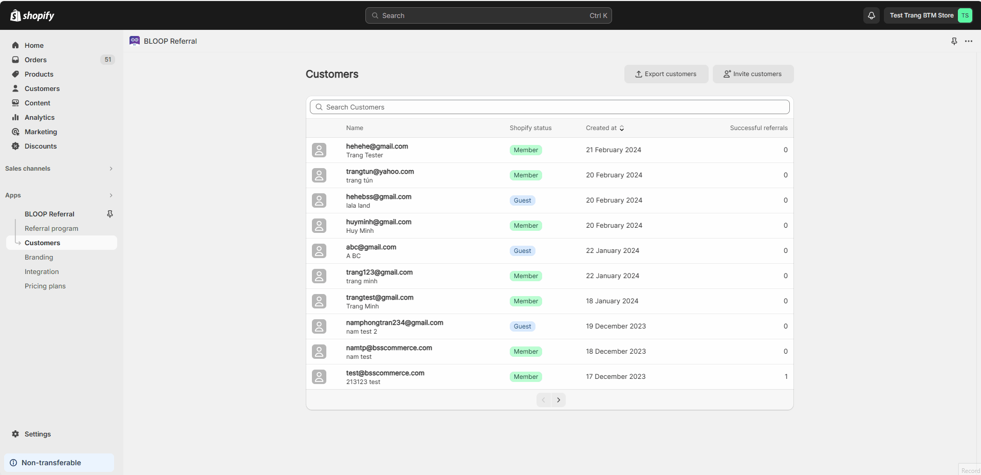 To invite customers join referral program, at the Customers tab > Invite > Select customers > Send invitation.&#x20;
